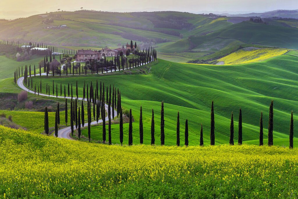 A paisagem da Toscana é de tirar o fôlego, com colinas verdejantes, vinhedos intermináveis, olivais e ciprestes que pontuam a terra em toda a região. É um lugar de abundância natural, com vilarejos medievais charmosos, campos férteis e montanhas imponentes ao fundo. Caminhar pelas ruas de paralelepípedos dessas cidades é como voltar no tempo, com suas casas de pedra, praças históricas e igrejas antigas.
