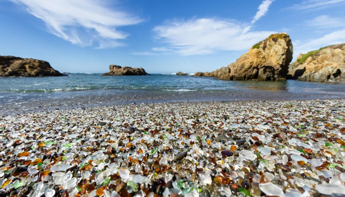Esta praia é famosa por suas areias repletas de fragmentos de vidro liso e colorido. Na verdade, esses pedaços de vidro são resíduos de antigas lixeiras que foram despejadas na praia há décadas e, com o tempo, foram polidos pelas ondas. Hoje em dia, a praia é protegida e é proibido remover qualquer vidro, mas os visitantes podem desfrutar da vista deslumbrante que eles proporcionam.