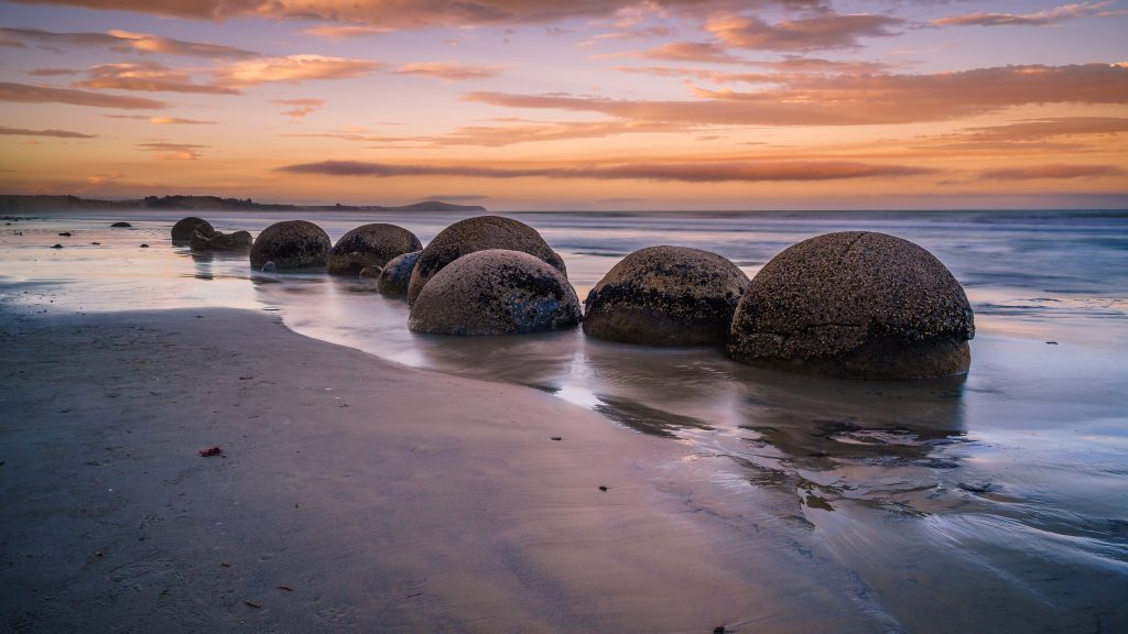 Esta praia é conhecida por suas formações rochosas perfeitamente esféricas, conhecidas como “Moeraki Boulders”. Essas misteriosas pedras têm milhões de anos e foram formadas pela sedimentação de lama e cinzas vulcânicas. Elas são tão redondas e perfeitas que parecem ter sido esculpidas por artistas.