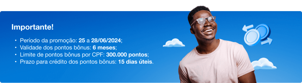- Os pontos bônus serão creditados nas contas dos clientes em até 15 dias úteis após o término da campanha;
