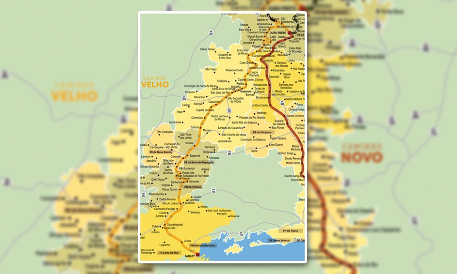 Por ser uma rota de longo curso, dividimos ela em quatro principais caminhos: Diamantes, Velho, Novo e Sabarabuçu. Estes caminhos passam por cidades como: Itabira, Petrópolis, São Luiz do Paratinga, Ouro Petro e Tiradentes.