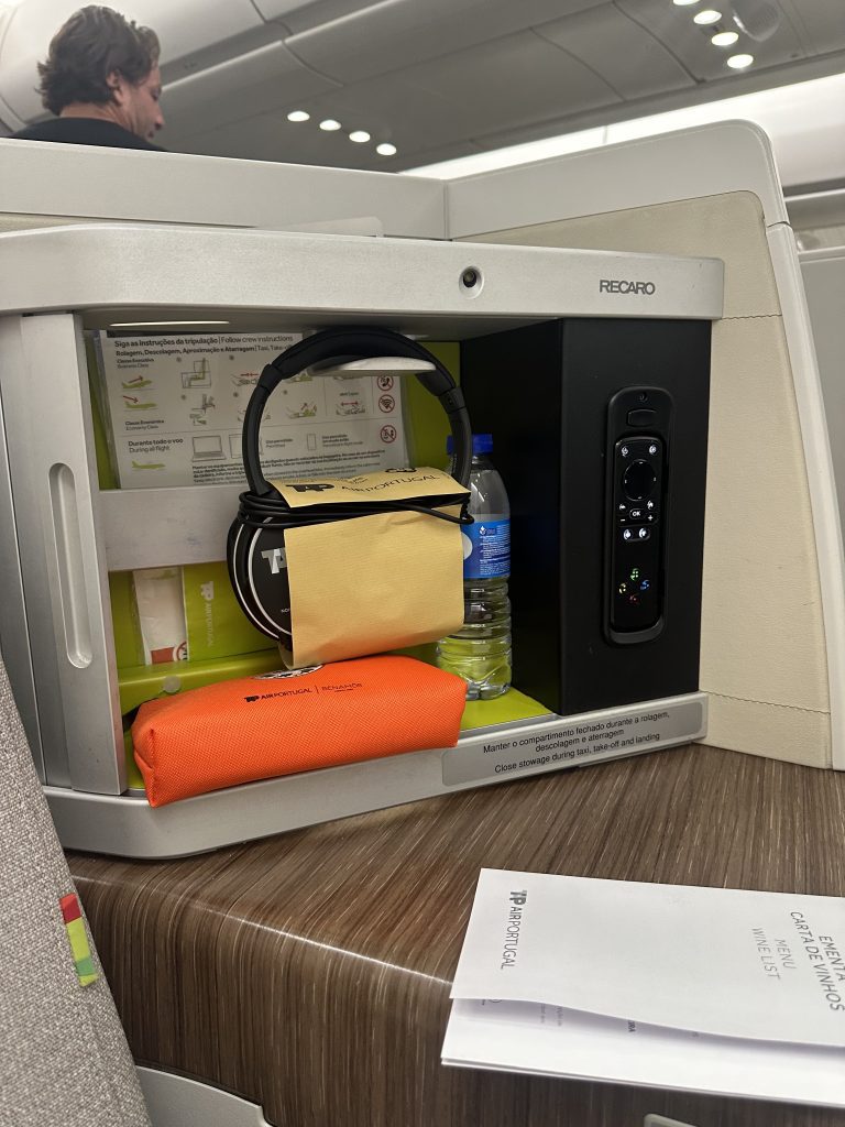 Gostei bastante da combinação de cores dos assentos da executiva da TAP, porém quanto a configuração das poltronas, se você for uma pessoa com uma estatura maior, sentar nos assentos ímpares em que o console fica próximo ao corredor, pode ser que fique apertado para você entrar e sair do assento, e nesse caso recomendaria os assentos pares.