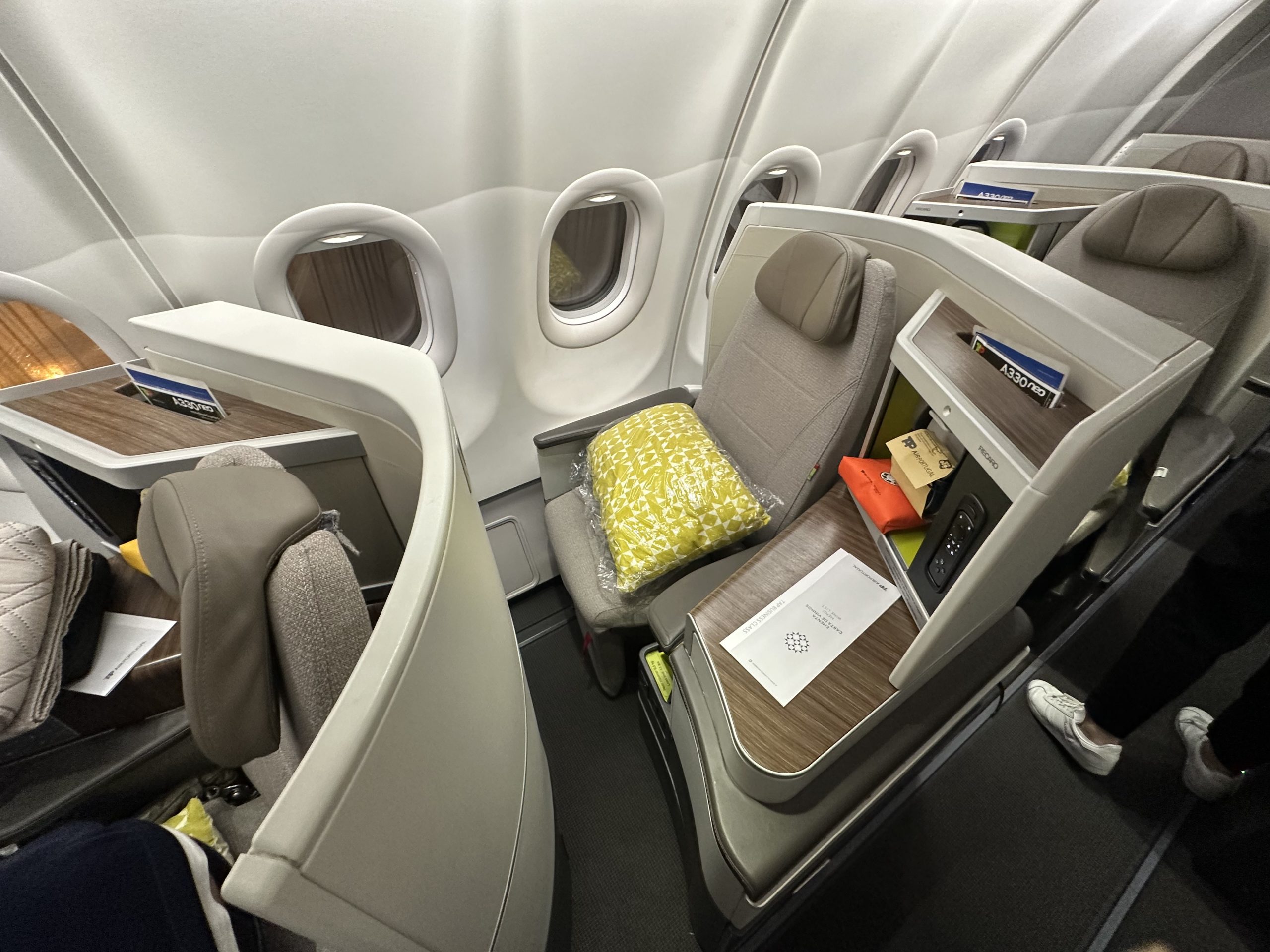 Gostei bastante da combinação de cores dos assentos da executiva da TAP, porém quanto a configuração das poltronas, se você for uma pessoa com uma estatura maior, sentar nos assentos ímpares em que o console fica próximo ao corredor, pode ser que fique apertado para você entrar e sair do assento, e nesse caso recomendaria os assentos pares.