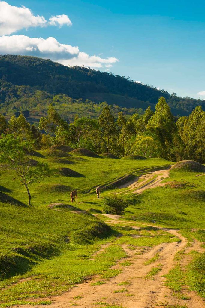 A vasta Mata Atlântica emoldura o cenário com campos floridos e planícies de um verde interminável, que se mesclam com a caatinga e os cerrados. Além disso, a paisagem é enriquecida por imensos paredões, desfiladeiros, cânions e cachoeiras, formando um panorama de beleza rara.