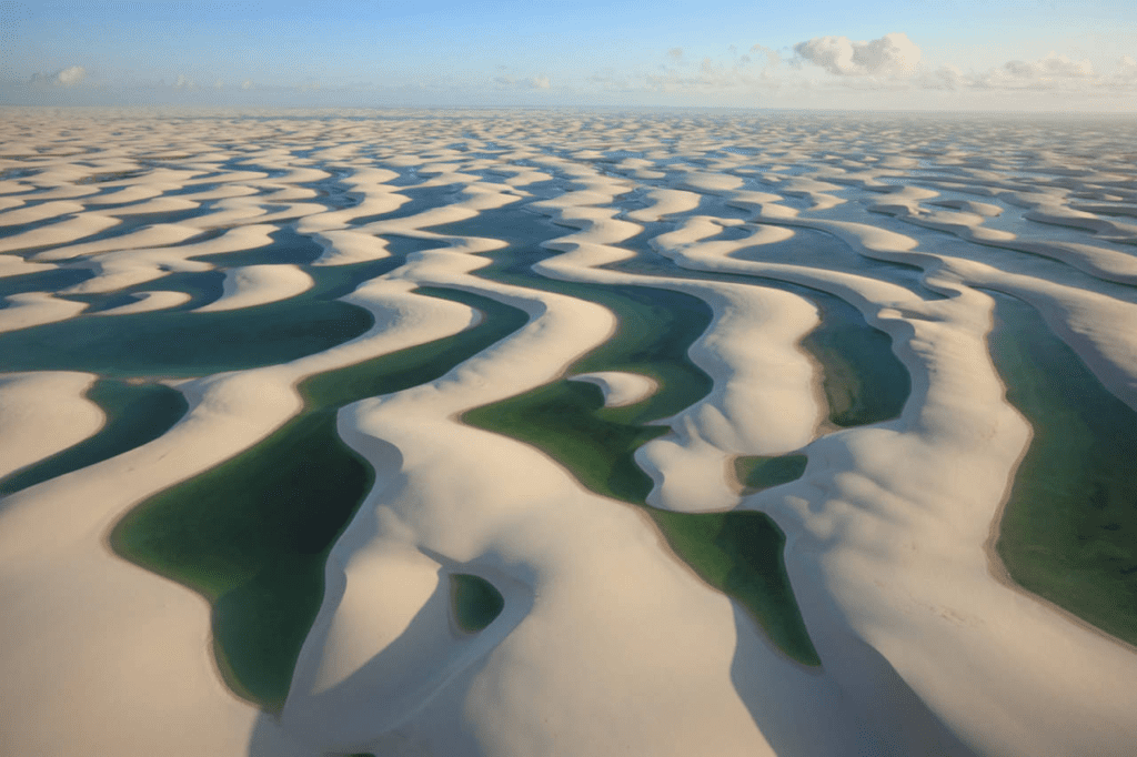 Os Lençóis Maranhenses são um dos destinos mais bonitos do Brasil. O parque nacional possui dunas e lagoas de águas cristalinas que formam paisagens incríveis. É possível fazer passeios de jipe e barco para conhecer a região.