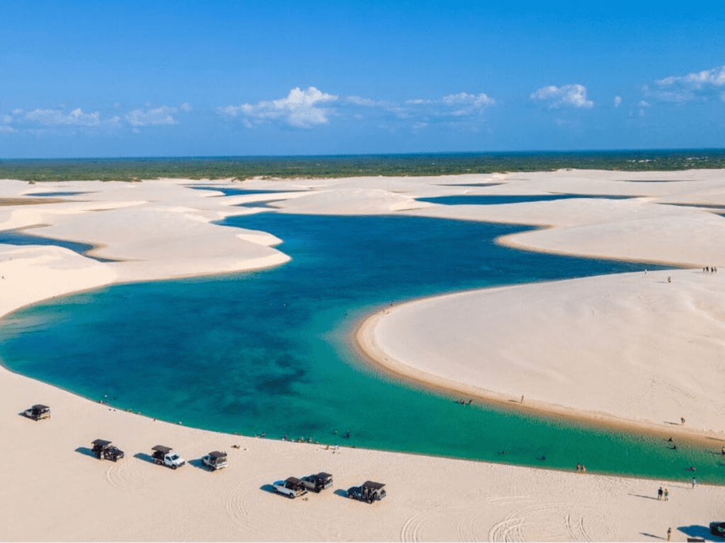 Localizado no estado do Maranhão, o Parque Nacional dos Lençóis Maranhenses é uma paisagem de tirar o fôlego. Com suas dunas brancas e lagoas cristalinas, parece um deserto paradisíaco. Durante o período de chuvas, as lagoas ficam cheias, criando um cenário único e perfeito para atividades como passeios de jipe, caminhadas e sandboard.