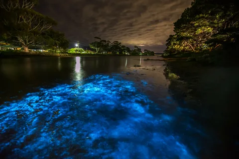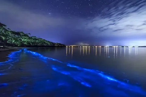 A bioluminescência é um fenômeno natural que ocorre quando organismos vivos produzem luz. Nas baías bioluminescentes, essa luz é gerada por microrganismos chamados dinoflagelados, que emitem um brilho azulado quando são perturbados.