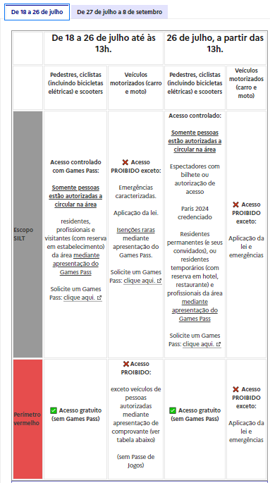 Um mapa interativo criado pelo Comitê Olímpico, o Comitê Paralímpico e o Ministério dos Transportes de Paris pode ajudar a visualizar os perímetros de segurança e as estimativas de lotação dos transportes públicos. Você pode acessar o mapa interativo