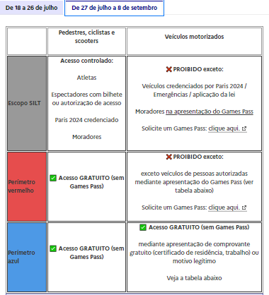 Para a realização dos jogos, Paris dividiu-se em três zonas com diferentes níveis de acesso e restrições para garantir a segurança e o fluxo adequado durante o evento.