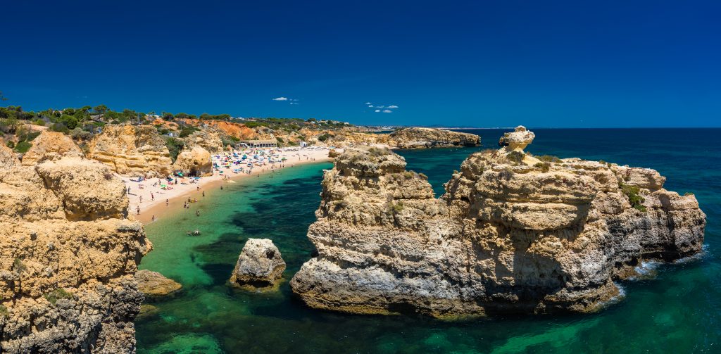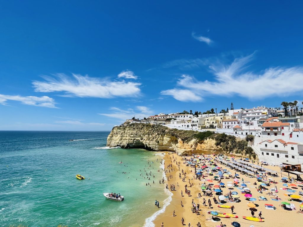 Outra praia imperdível é a Praia do Carvoeiro, também no Algarve. Esta praia é cercada por falésias impressionantes e oferece vistas deslumbrantes do oceano. Além disso, as águas calmas e claras tornam este local ideal para famílias com crianças pequenas.