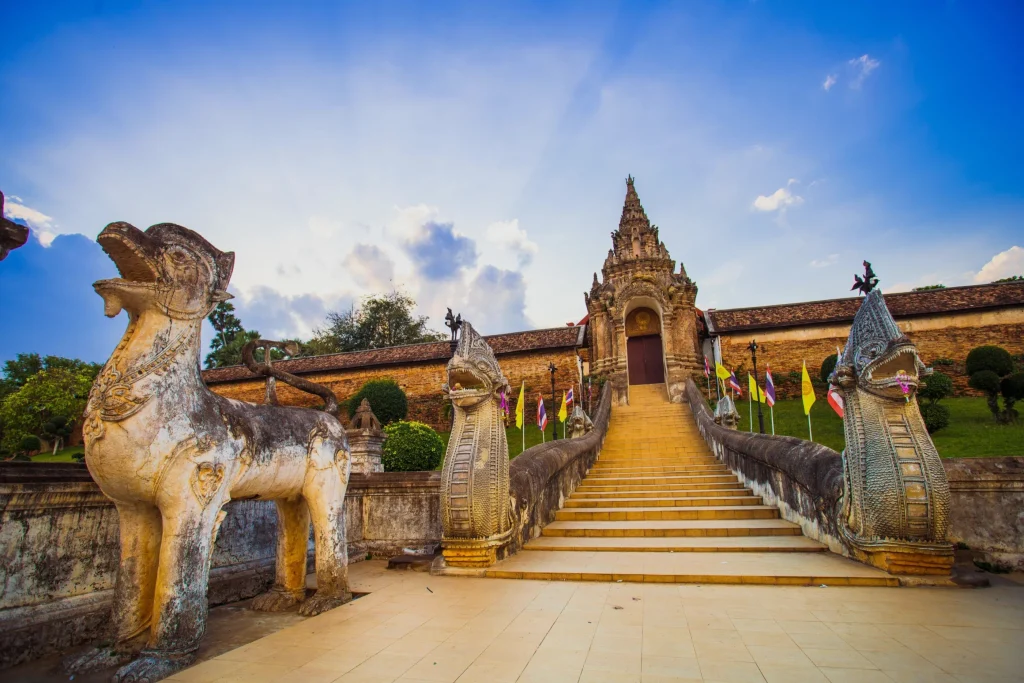 No coração da histórica cidade de Lampang, no norte da Tailândia, o Wat Phra That Lampang Luang se ergue majestosamente como um farol de fé e cultura. Fundado no século XIV, este templo budista dourado é um dos mais importantes e antigos de Lampang, conhecido por sua arquitetura impressionante, jardins serenos e atmosfera vibrante.