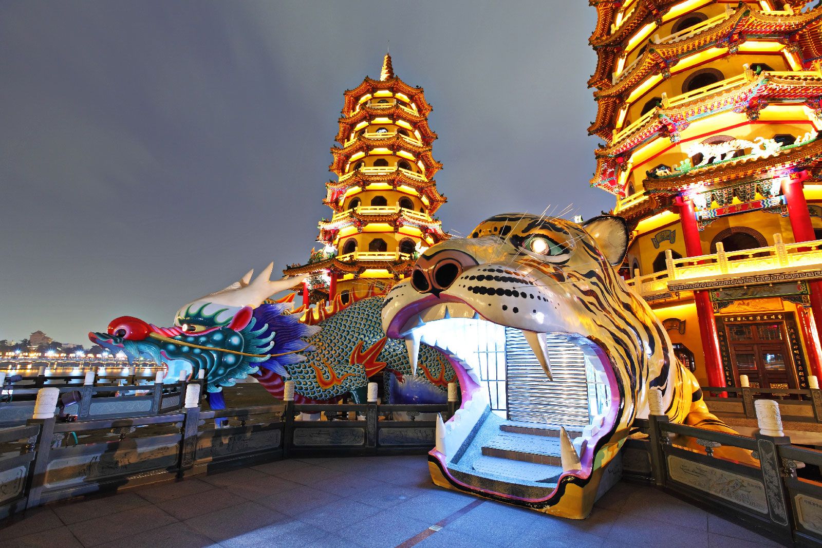 Além disso, pagodas não apenas servem como marcos arquitetônicos impressionantes, mas também carregam um profundo simbolismo cultural. Representando os princípios de yin e yang na filosofia chinesa, o “Tigre” e o “Dragão” simbolizam as forças complementares que equilibram o cosmos, refletindo a harmonia buscada na sociedade e na espiritualidade taiwanesa.
